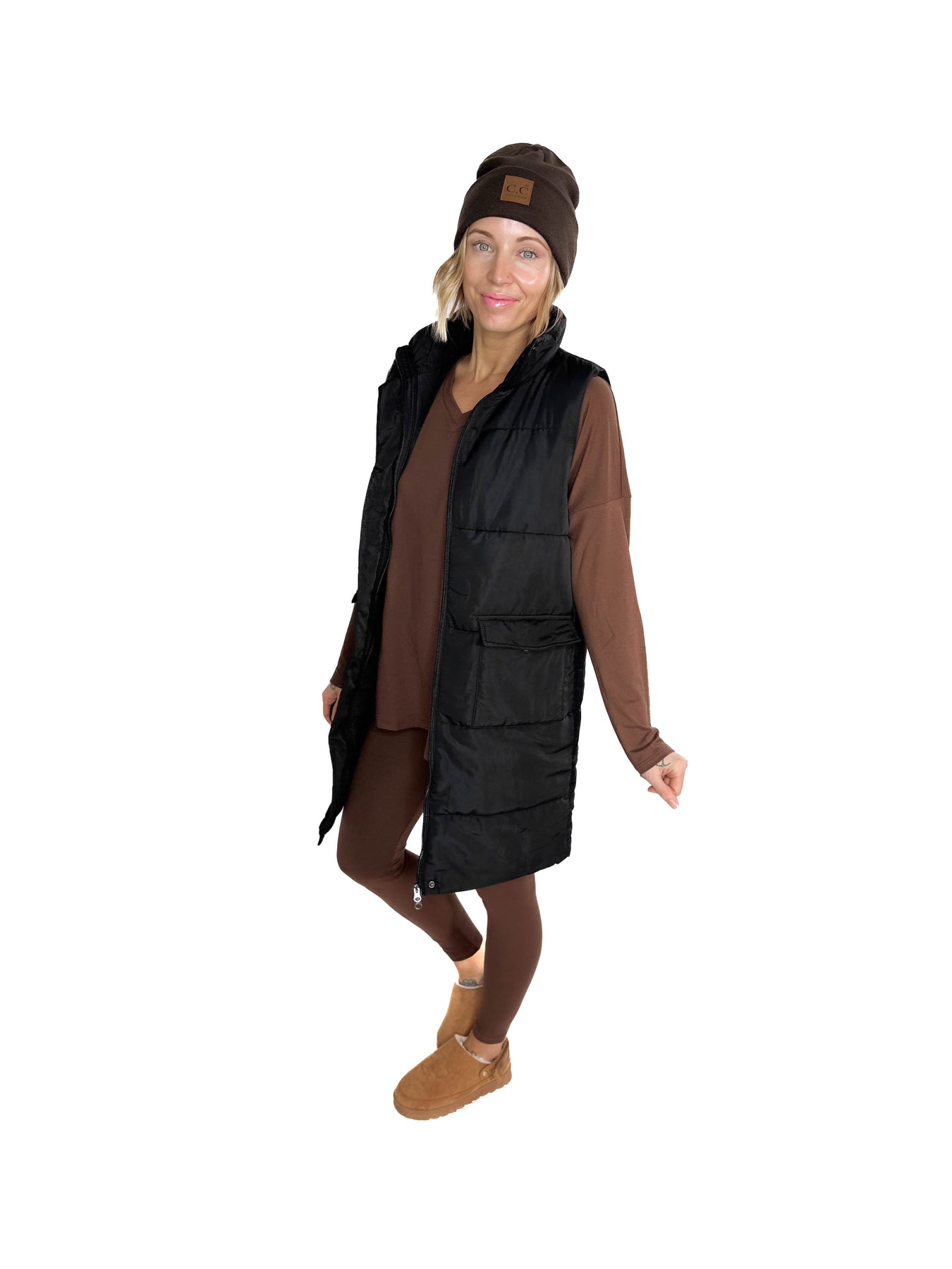 Additional: Longline Puffer Vest, Full Zip & Snap Closures, Lined, Warm, Side Pockets