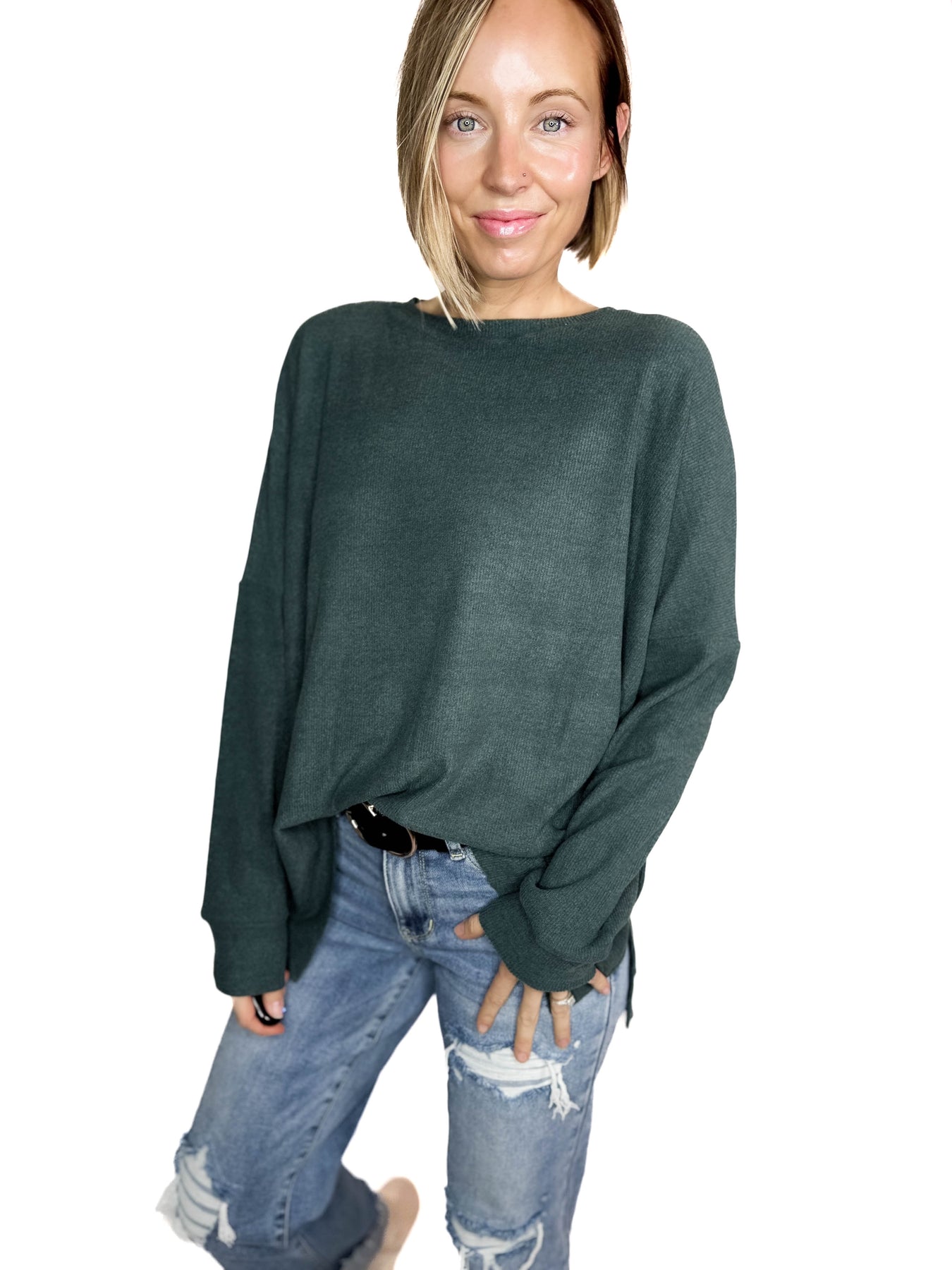 Additional: Ribbed Crew Neck, Long Sleeve, Small Side Slit Detail